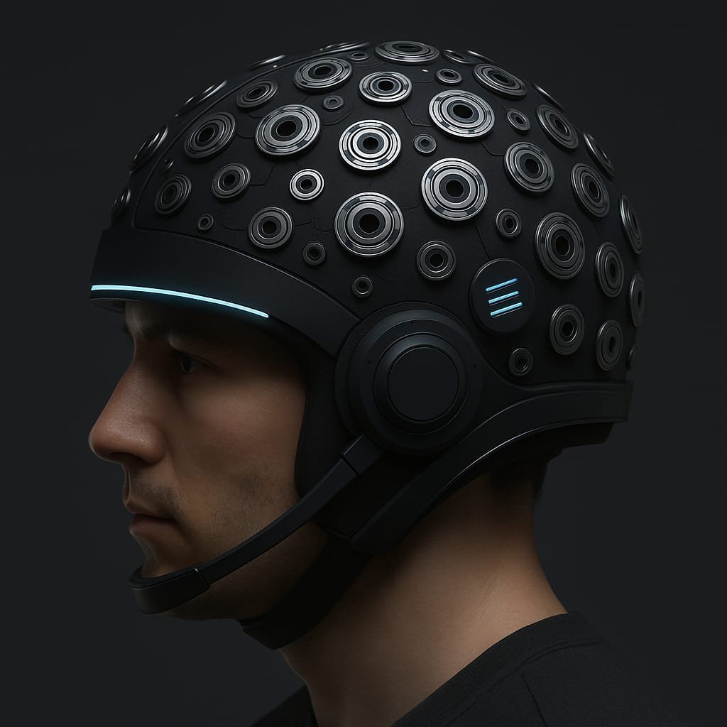 El usuario utiliza el casco durante un periodo inicial de entrenamiento, registrando datos de EEG y fNIRS.
